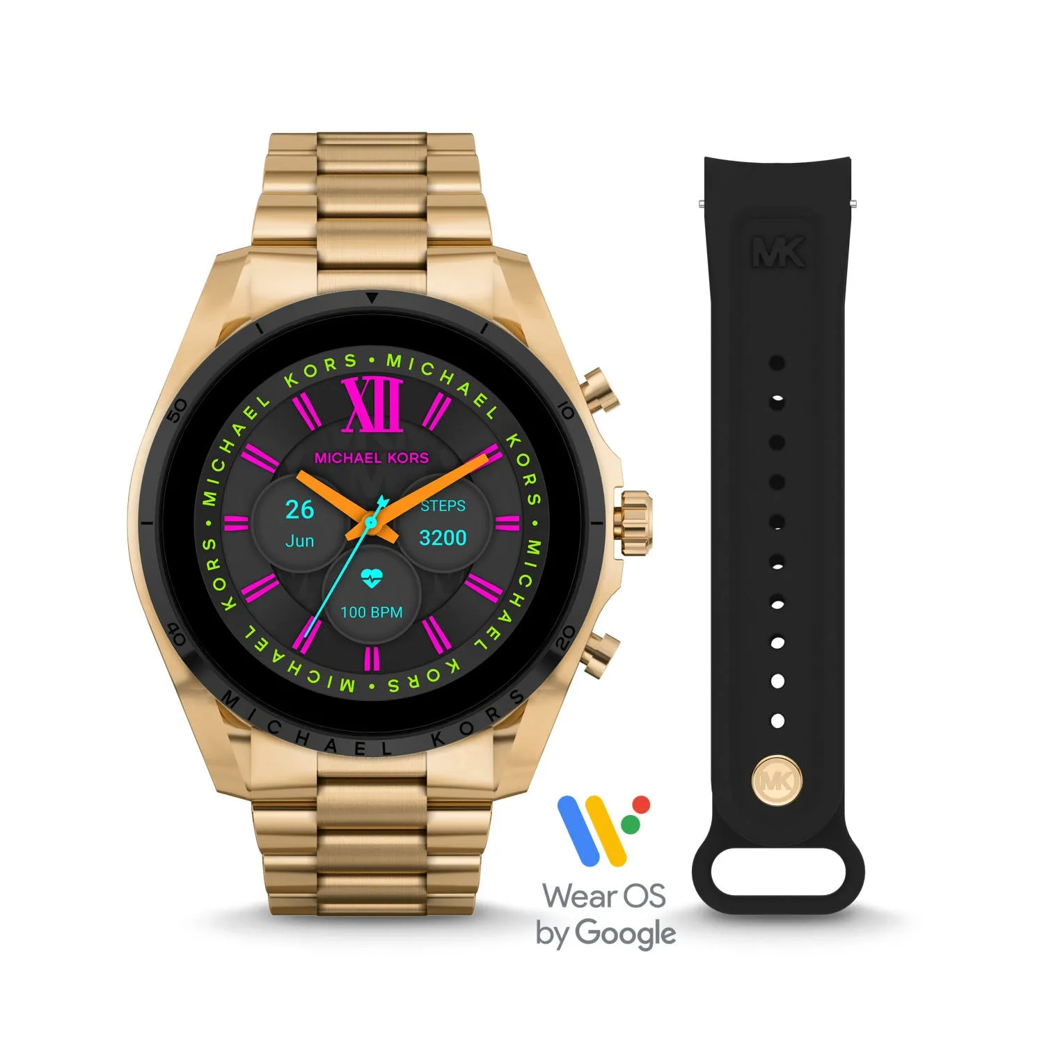 Michael Kors telah mengembangkan produknya ke jam tangan pintar Gen 6 Bradshaw, yang merupakan kombinasi sempurna antara kecanggihan dan kecantikan. Dibuat dari baja tahan karat warna emas dengan tautan tengah pavé, jam ini dilengkapi dengan sejumlah fitur kesehatan termasuk monitor detak jantung, sensor SPO2 untuk melacak pernapasan dan status tidur kamu untuk meningkatkan kualitas tidur. Wear OS by Google yang kompatibel dengan ponsel dapat menjalankan Android atau iOS versi terbaru. Pengguna Android bisa mendapatkan sedikit bantuan tambahan dengan Alexa built-in.